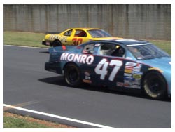 On the left cars in turn 5, in the middle cars going into turn 1 during Saturdays feature race. Winners of the race A class, First Dale Phelon, second Jack Finch and third Don Soenen.