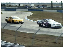 These pictures are from the Sebring Fall Classic 2007 run Nov. 29-Dec.2. To start here are some pictures taken during the practice on Friday morning at turn 3. The first two have the #11 trying to pass the # 6 in the turn from outside and from the in car camera.