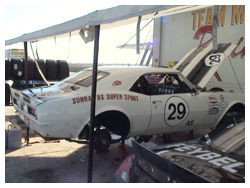 The first race of Friday afternoon was delayed and then rescheduled for Saturday afternoon because of rain. Here are a couple of photos of several of the cars waiting it out in the pits.