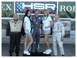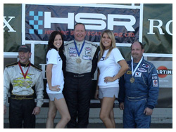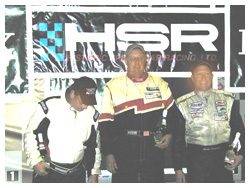Saturday night HSR held an awards dinner. Since two of the stock car drivers also drive GT cars a picture of the Sam Posey Award going to Dale Phelon and Don Soenen is shown here.