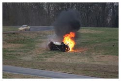Some shots of Ed Bull making smoke , catching fire and a singed car.