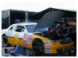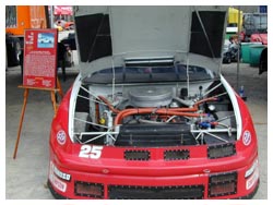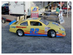 David Lewis put his car on static display after losing a second engine. Mike Goodman lost an engine after throwing an oil pump belt. The mini stock car actually ran using a 30 HP snowmobile engine. Tom Cetola and John Orzechowski took turns climbing in it, a rather tight fit.